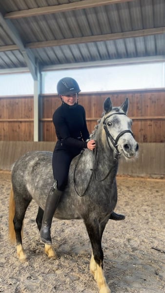 Zum Verkauf steht im Auftrag eine 2021 geborene Welsh-Stute mit einem aktuellen Stockmaß von ca. 1,35 m, die mit weiterer Förderung ein vielseitiges und sportliches Pony werden kann. Sie beherrscht die drei Grundgangarten und zeigt sich im täglichen Umgang sehr unkompliziert. Anbinden, putzen, Hufe geben, satteln und trensen sind für sie selbstverständlich. Man kann sich ohne Sattel auf sie setzen, was ihr Vertrauen und ihre Kooperationsbereitschaft im Umgang unterstreicht. Im Gelände zeigt sie sich brav, gelassen und zuverlässig, sowohl alleine als auch in der Gruppe. In der Reithalle benötigt sie einen sicheren und erfahrenen Reiter, der ihr Vertrauen schenkt und sie altersgerecht weiter ausbildet. Altersbedingt testet sie gelegentlich ihre Grenzen, weshalb eine ruhige und konsequente Herangehensweise wichtig ist. Sie reagiert sensibel auf die Reiterhand und mag kein Festhalten oder unruhiges Einwirken am Zügel. Mit einer feinen, ruhigen Hand lässt sie sich angenehm reiten. Aufgrund ihres Charakters ist sie kein Anfängerpony, eignet sich aber hervorragend für Reiter, die Erfahrung mit jungen Ponys haben und Freude an einer partnerschaftlichen Ausbildung haben. Derzeit ist die Stute noch etwas zu gut im Futter und sollte entsprechend abnehmen. Mit gezieltem Training und passendem Management bringt sie jedoch beste Voraussetzungen mit, sich zu einem schönen, sportlichen Welsh-Pony zu entwickeln, das perspektivisch auch im Turniersport überzeugen kann. Später wird sie sicherlich ein wunderbares Kinderpony und wir könnten uns auch ein Mutter-Tochter-Duo sehr gut vorstellen. Dank ihrer Größe deckt sie viele Reiter gut ab und ist vielseitig einsetzbar als Dressurpony, Springpony, Freizeit- oder Allroundpony. Die Stute ist aktuell barhuf, kennt sowohl Boxenhaltung als auch Offenstall und zeigt sich kooperativ beim Schmied sowie verlässlich beim Verladen. Die Stute befindet sich in 9655 Luxemburg und kann nach Absprache probe geritten werden. Der Preis liegt bei 3.900€. Ein Transport kann gegen Aufpreis organisiert werden. Für weitere Informationen oder Videos kontaktieren Sie mich gerne telefonisch unter +352 691 269 143.