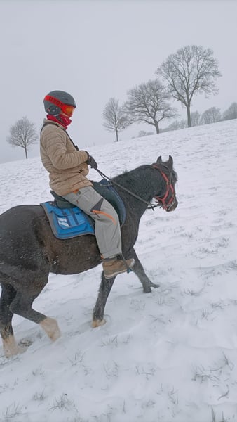 Unsere Talia und evtl. auch ihre Tochter (Welsh-Haflingerpinto-Mix) hat noch freie Spitzen. Sie ist sehr kuschelbdürftig und menschenbezogen, dennoch kein Anfängerpferd. Sie hat schöne ansätze beim Dressur-Reiten, darf dahingehend aber noch gut gefördert werden. Auf dem Platz kann sie aber auch immer mal zusammen zucken, wenn sie etwas gruseliges sieht. Auch im Gelände ist sie kein Verlasspferd, von mir aber gut händelbar. Je nach körperlicher Situation kann sie auch ganz entspannt sein, das kann sich aber auch jederzeit ändern. Hängerfahren geht mit Zeit und Überzeugungskraft, bei häufigeren Fahren wird es besser. Falls du also eine liebevolle Herausforderung suchst und nicht schwerer als 65kg bist, melde dich gern.