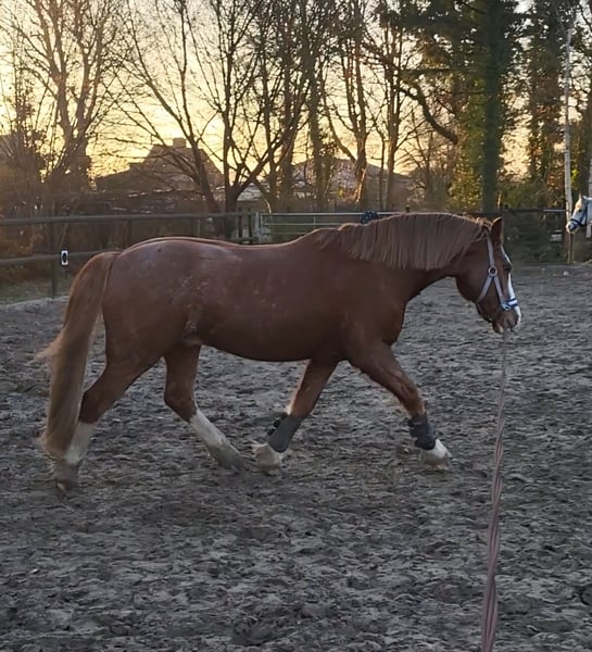 Aus gesundheitlichen Gründen meinerseits müssen wir uns leider von unserem Herzenspony und Familienmitglied trennen. Taffy, ein lieber Welsh Wallach sucht ein neues Zuhause. Er ist ca 1,47m groß und 12 Jahre alt. Taffy ist ein echter Allrounder. Er läuft unter dem Reiter auf dem Platz, lässt sich longieren und springt auch gerne einen Parcour. Durchgehen,bocken oder treten sind für Ihn ein Fremdwort. Ausritte oder Spaziergänge liebt er ebenso.(Straßensicher) Meine Kinder (4&6) reiten geführt auf ihm aus und an der longe auf dem Platz. Er lässt sich problemlos von ihnen putzen und betüddeln. Taffy ist in einer reinen Wallachgruppe herdenverträglich. Kennt im Winter Box und Paddock und im Sommer 24/7 Weide Regelmäßig geimpft,entwurmt,beim Hufschmied und Zahnarzt Taffy wird mit komplettem Equipment(Sattel,Trense,Decken,etc) verkauft!