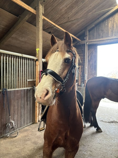 Hi..wir suchen für unseren Wallach ein neues zu Hause, er ist absolut fein zu reiten, auch von kleinen, sehr vorsichtig, steht artig beim putzen.. wird z.Zt. Von unserer 11 jährigen Tochter geritten..er springt einen kleinen E Pacour, artig im Gelände, geimpft, Schmied regelmäßig, gerade Zähne gemacht.. er ist echt ein absolut feiner Kerl!!Zubehör kann mit erworben werden