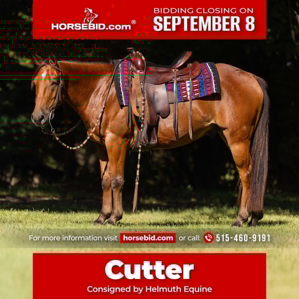 ♦️ 𝐭𝐡𝐞 𝐒𝐞𝐩𝐭𝐞𝐦𝐛𝐞𝐫 𝑺𝒆𝒍𝒆𝒄𝒕 ♦️ Happening now thru MONDAY | SEPTEMBER 8th - Available EXCLUSIVELY on HorseBid's website! For more details and to register visit: www.Horsebid.com CONSIGNOR CONTACT: Helmuth Equine (515) 460-9191 LOCATION: Ames, IA BREED: Welsh Cross REGISTERED: No COLOR: Bay HEIGHT: 14.1 AGE: 5 GENDER: Gelding Meet Cutter, a truly one of a kind horse who can do it all! He is a 5 year old, 14.1 hand Welsh Cross gelding who is 100% beginner-safe for trail riding, arena riding, western, English, bareback, and even jumping. Cutter is as solid as you could ever hope for in a young horse. He will lope circles of any size, anywhere, with ease. He is ready for first level dressage and has the ability to move up the levels with continued training. Cutter also drives both single and in a pair. Whether you want to trot down the road for a Sunday drive or take him to a combined driving show, he’ll shine in all three phases. Around the barn, Cutter is easygoing and scores a perfect 10 in ground manners. He can be ridden once a month or every day, and he will never offer to buck or display any undesirable behavior. Sweet-natured and incredibly hardworking, Cutter is suitable for nearly any discipline. At the same time, he’s relaxed and loves hitting the trails. He’ll happily take the lead, even through water. Cutter is blemish free, 100% sound, and requires no special maintenance. He’s the kind of horse any young teenager or anyone looking for a versatile, fun partner will absolutely fall in love with.