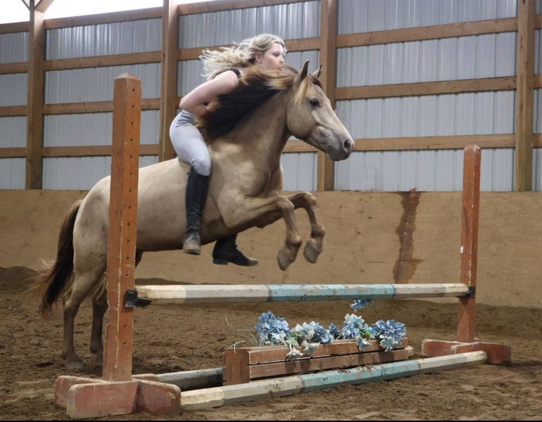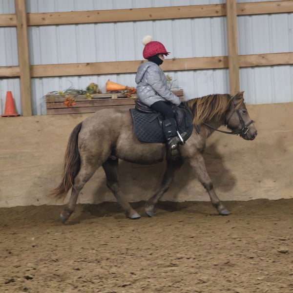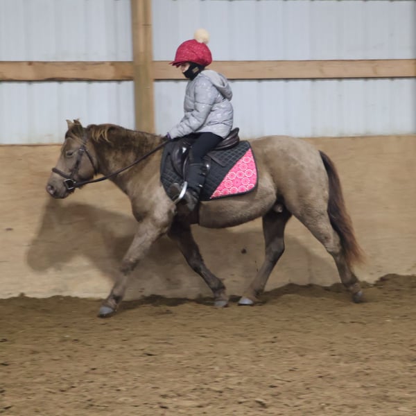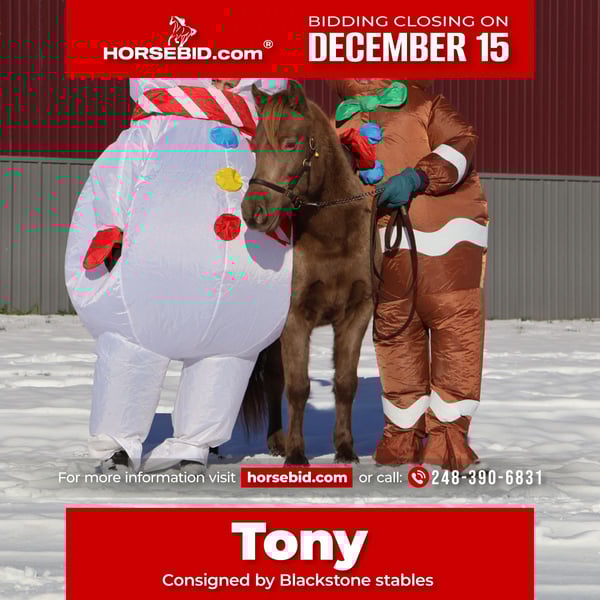 🎄𝐓𝐇𝐄 𝑯𝒐𝒍𝒊𝒅𝒂𝒚 𝐂𝐋𝐀𝐒𝐒𝐈𝐂🎄 Happening now thru MONDAY | DECEMBER 15th - Available EXCLUSIVELY on HorseBid's website! For more details and to register visit: www.Horsebid.com CONSIGNOR CONTACT: Blackstone Stables 248-390-6831 LOCATION: Howell MI BREED: Welsh REGISTERED: No COLOR: Champagne HEIGHT: 12.1 AGE: 5 GENDER: Gelding Stop your scrolling! Here is the ultimate safe AND talented pony with show experience and trick training! I’m proud to introduce and offer Tony The Pony! He is the pony that kids dream of owning and that parents trust to keep their kiddos safe. Tony is a unique champagne color with a beautiful thick mane and tail. He is 5 years old and stands a stout 12.1hh. Tony is a pony anybody can ride! He walk trot and canters on a loose rein, steers with leg and seat, has flying lead changes, and has excellent breaks. For the last couple months, Tony has been working in our lesson program teaching all types of riders including the first timers to the more advanced students that jump and show. Tony has attended several schooling shows! He performed well in the chaos and won a few blue ribbons! Tony also rides western! He trail rides like an old pro. Nothing phases him out in the woods. He’s seen it all from the hills, creeks, ponds, thick brush, logs, mud, and wildlife. Just when you think Tony couldn’t get any better well he is also trick trained! He knows how to sit and lay down on command. A tap on his left shoulder blade or on his left front pasture and he lays right down to get on or off. Tony has wonderful ground manners. He will ground tie, cross tie, or tie to a post and stand all day to be groomed. He also stands for other things like saddling, farrier, mounting/dismounting, bathing etc. He is also well broke to ride. Hook him up and head to town, a parade or take him sledding in a snowy day, he’s game to do it! He is a finished, safe, quiet, bombproof pony with absolutely no holes in his training! On top of that he has the talent and training to take your young rider to the winners circle. What more could you want in a kids pony?!?!? Come meet Tony and he’s sure to steal your heart! Located in Howell Michigan