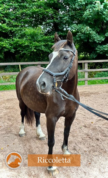 Schwarze 13-jährige Welsh D Cob Stute, 142 cm Unsere liebe Riccoletta sucht ihr für immer 🏡 als Reitpony. Sie ist ihr ganzes Leben lang bei uns gewesen. Sie war ein Reitpony, hat aber auch zwei Fohlen geboren. Sie ist ein motiviertes Pony, das gerne am Boden arbeitet, Dressur reitet, ein wenig springt und Ausritte macht. Wir suchen ein Zuhause mit einem selbstbewussten Jugendlichen oder einem kleinen Erwachsenen, der gerne alles Mögliche macht. Sie hatte als Fohlen eine Verletzung am rechten Auge und hat eine eingeschränkte Sicht, was sie jedoch nicht beeinträchtigt.