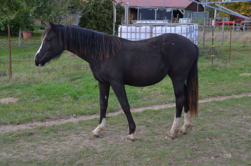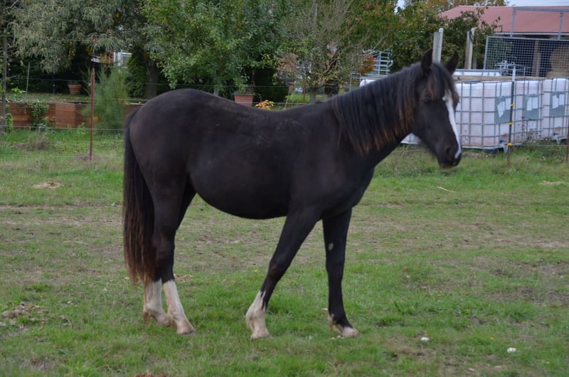 Kostal « Malia » est née le 30/04/2023 dans notre ferme. Elle est issue de l'étalon Welsh D « Glantreath The Dominator » et de notre jument « Kostal Skyla ». Race : Welsh D Sexe : Jument Âge : 2 ans Robe : Noire Utilisation : Loisir, Dressage, Élevage directement de l'éleveur Description : Malia est issue de notre propre élevage et grandit de manière appropriée avec d'autres yearlings et juments. C'est une jeune jument docile et volontaire. Elle est habituée au transport en van et ne pose aucun problème avec le maréchal-ferrant. Comme tous nos poneys, elle est pieds nus. Malia a une ossature solide et des mouvements impressionnants. Elle vit chez nous en troupeau, dans un abri ouvert avec paddock attenant. De plus, elle a un bon contact avec les humains. Prix : 6000,00 euros Nous avons d'autres poneys de différents âges à vendre.