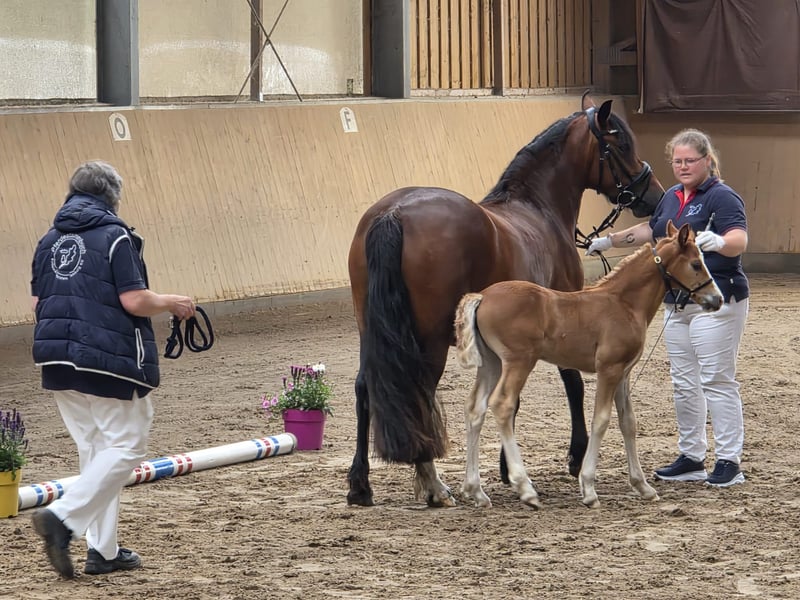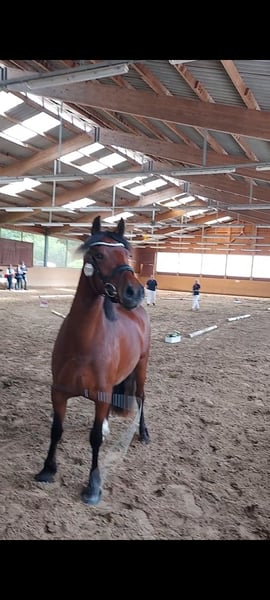 Travenas Samira Now 5 years old She has not been ridden yet. For self-education, Samira already holds the Verband Premium award. This year, she foaled a premium-rated filly. In the video, she was 3 years old when she received the Verband Premium. Last chance to acquire a wonderful pony at a low price. Afterward, she will be trained, and the price will increase. She has a calm temperament, and I could also see her as a driving pony. Her half-brother, Travenas Takoda Secret, is licensed and passed his driving performance test with a score of 9.39.