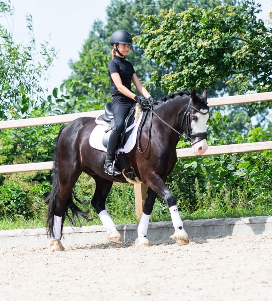We are reluctantly offering our Captain Keks into loving hands. He is a very special pony – stunningly beautiful, expressive, and with a heart of gold. With his elegant appearance, blue eye, and friendly nature, he attracts attention everywhere – whether in the stable or on the competition arena. • Name: Captain Keks • Breed: Welsh Cob (Section D) • Gender: Gelding • Born: 2014 • Height: approx. 14.2 hh • Training: Dressage up to Class A** • Achievements: Placed in A*-level dressage, very successful in WBO competitions • Health: Always healthy, comprehensive pre-purchase exam from 2023 available • Very affectionate, friendly, and easy-going in handling • Loading and farrier-friendly • Well-behaved, honest, eager to work – always strives to do his best • Expressive with a solid basic training • Ideal for ambitious leisure riders or experienced children Captain Keks is not suitable for absolute beginners. He needs a consistent, clear rider who can handle him with love but also with confidence. At competitions, he can sometimes be a bit impressed, especially in noisy environments. At home, he remains calm, well-behaved, and reliable. As our daughter is moving into show jumping and transitioning to a larger horse, we are now seeking a suitable, long-term home for Keks. We will only rehome Captain Keks to a 5-star home – preferably to an experienced horse-owning family or a mother-daughter team who recognize his strengths, can handle his sensitive nature, and continue to support his development. If genuinely interested, we are happy to send a current video.