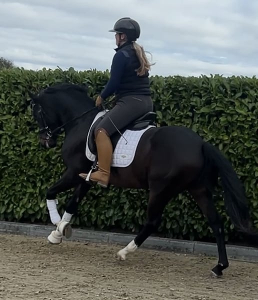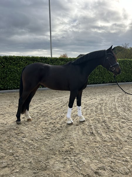 Who is ready to work with this adorable young D pony? 🐴 Dempsy is a very charming 3-year-old D pony (born on April 28, 2022) with an expected height of approximately 1.47 m. Lineage: Nia Domo’s Bolero x Orchard D’Avranchas He was approved radiographically last year. Dempsy is a affectionate and eager-to-learn pony. He has just been backed and is still a bit green, but thanks to his excellent temperament, he picks up everything very quickly. In the stable, he is a real cuddle buddy. In the pasture, he calmly walks past a busy main road with a lot of (truck) traffic, and he shows no signs of concern. Dempsy has been with me for about a year now. After starting under saddle, he was given time to develop further at a relaxed pace. Recently, we have cautiously resumed training, and he is performing exceptionally well. In short: a sweet, sensible, and willing young pony, ready for someone to further train and develop! Price on request. Video available upon request. +31 6 83 81 01 10