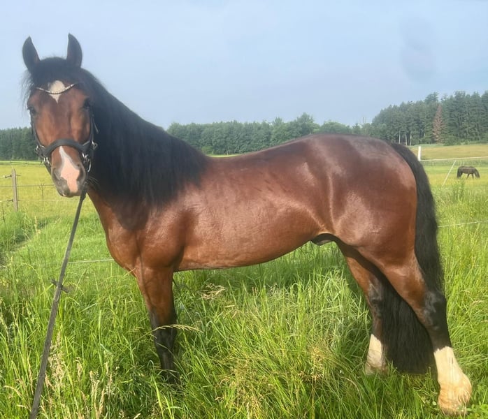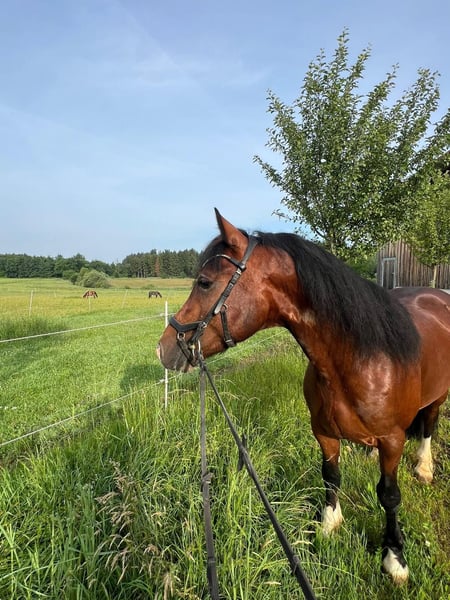 **Verkaufsanzeige: Welsh-D Wallach zu verkaufen** Zum Verkauf steht ein wunderschöner Welsh-D Wallach, geboren im Jahr 2021. Aleanto war bei uns zuvor im Deckeinsatz und wurde dann im Mai kastriert, da er als Hengst einen anstrengenden Charakter hatte. Seit der Kastration zeigt er sich viel umgänglicher und freundlicher. Er ist geritten, auch im Gelände und ein- und zweispännig gefahren. Dadurch eignet er sich hervorragend für verschiedene Aktivitäten und ist bereit, mit Ihnen gemeinsam neue Abenteuer zu erleben. Bei Interesse oder weiteren Fragen stehe ich Ihnen gerne zur Verfügung. Besuchen Sie uns und lernen Sie diesen tollen Wallach persönlich kennen!
