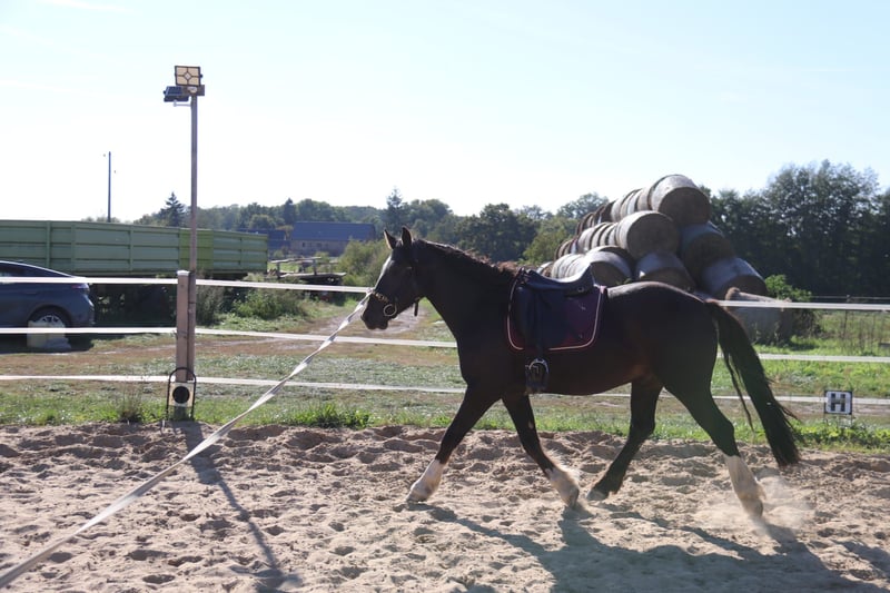 Zargon ist ein dreijähriger Welsh Cob Wallach von Stubbenhof Zorro aus einer bewegungsstarken sportlichen Welsh Cob Stute Solloway Lady Lara. Prämiert als Fohlen hat sich dieser schöne Rappe gut entwickelt und besticht durch seine überragenden drei Grundgangangarten. Er ist menschenbezogen und leistungsbereit. Er wurde im Sommer anlongiert und an Reitergewicht gewöhnt. Er zeigt sich auch hier unkompliziert. Leider hat er sich in der Aufzucht auf der Hengstkoppel am Hinterbein verletzt. Die Schwellung hat ihn niemals behindert und hat keinen Einfluß auf seine Bewegungen. Das Bein wurde ohne Sehnenbefund tierärztlich behandelt. Aufgrund der immer noch vorhandenen Umfangvermehrung wird Zargon unter Wert abgegeben. Wenn Sie einen Freund fürs Leben suchen, ist vielleicht Zargon Ihre Chance. Bei Fragen oder Interesse stehe ich Ihnen gerne zur Verfügung.