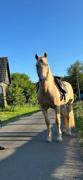 Bendur ist ein echter Hingucker , leider versteht er sich nicht gut mit meiner vorhandenen Stute , da unsere Pferde bei uns am Haus leben und ich sie nicht ständig trennen möchte, suche ich für Bendur ein neues Zuhause . Wichtig ist mir , das er ein Zuhause bekommt , wo er geliebt und verstanden wird . Er ist ein schlauer Kerl , der ausgelastet werden möchte . An Anfänger möchte ich Bendur nicht geben , da er regelmäßig anfragt ob die Regeln noch gelten . Dabei ist er nicht bösartig und mit klaren Ansagen lässt er sich gut führen. Er genießt die Aufmerksamkeit seines Menschen , ist eine schmusebacke , aber auch auf seine Art wieder sehr autark . Bei der Züchterin wurde er viel zu schnell und ohne grosse Vorbereitung auf die Hengstleistungsprüfung geschickt. Die ist er mit Bravour gelaufen, danach wurde aber nicht mehr viel mit ihm gearbeitet und so hat er davon nicht wirklich profitiert. .Mit Bodenarbeit und Geduld hat sich Bendur aber toll weiterentwickelt . Ich möchte ihn jedoch nicht an ambitionierte Turnierreiter verkaufen. Er hat die Anlagen definitiv dafür und gerade Springen bereitet ihm großen Spaß , aber als reines Turnier Pferd sehe ich ihn nicht . Er hat wunderschöne Gänge , ist im Gelände ein Traum , sehr rittig und gut fein zu reiten.. Er ist verkehrssicher , trittsicher und mutig. Er lässt sich toll sitzen und auch in unvorhersehbaren Situationen gut führen. Er lebt zusammen mit meiner Stute bei uns am Haus und genießt ein freies Leben ohne Gitter . Das würde ich ihm auch weiterhin wünschen. Da er jedoch erst mit 8 Jahren gelegt wurde, wäre eine reine Wallach Gruppe oder ein Kumpel wahrscheinlich das sinnvollste. Reine Stallhaltung möchte ich ihm nicht zumuten. Abends steht er in der Box mit Auslauf . Probe reiten kann bei Interesse jederzeit vereinbart werden .Bendur wurden im Frühjahr die Zähne gemacht , Hufe werden alle 6 Wochen bearbeitet. Er läuft aktuell mit Hufschuhen . Er geht prima auf den Hänger . Top gesund . Er wird nur an privat Leute verkauft, kein Händler oder Schulbertrieb. Es ist auch kein Not Verkauf , wir haben Zeit und möchten das bestmögliche Zuhause für Bendur .