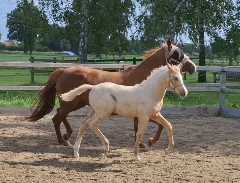 Sweet and affectionate foal with three good gaits. Loves attention and grooming. Is handled daily and walks nicely on a lead rope. Also accustomed to having its hooves picked out daily. Older full siblings are nice, reliable, and well-mannered all-rounders, who move well, learn quickly, and enjoy working together. In short, the ideal pony for a slightly older child, teenager, but also for a young adult.