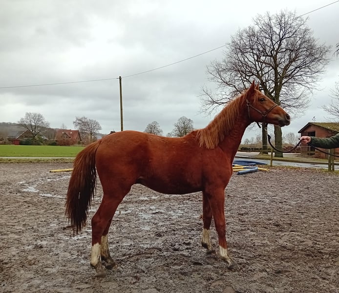 Eleganter Westfale-Hengst, geborene 2024, Dunkelfuchs Vater 174 von Selectric Mutter 164 von Dream on Er ist kennt alles was man in dem Alter können sollte. Schmied,Wurmkur Anbinden Führen verladen. Alles kein Problem Gut sozialisiert und Menschen bezogen Kann bei Interesse dort stehen bleiben und evtl.auch später angeritten werden Besichtigung möglich