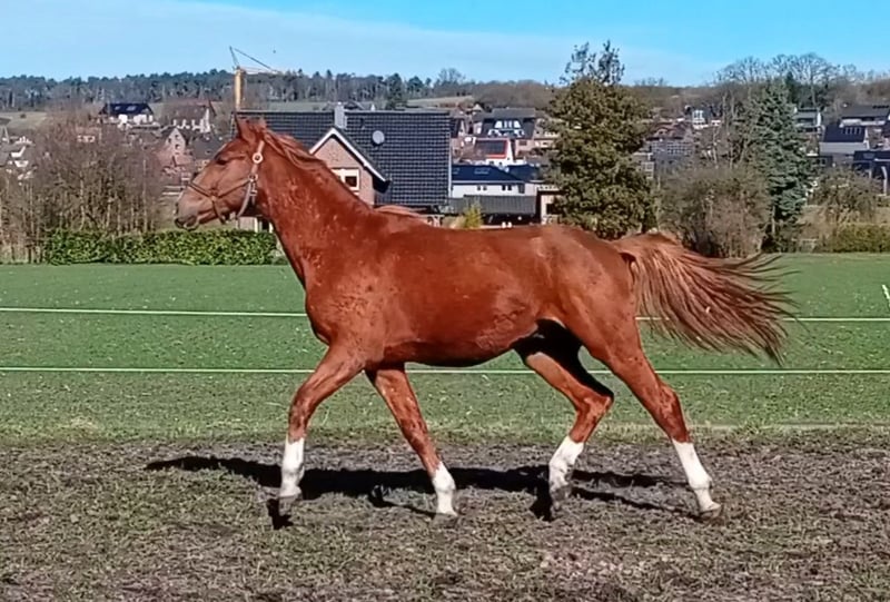 Eleganter Westfale-Hengst, geborene 2024, Dunkelfuchs Vater 174 von Selectric Mutter 164 von Dream on Seine Mutter ist sowohl Dressur als auch Springen gezogen. Er ist kennt alles was man in dem Alter können sollte. Schmied,Wurmkur Anbinden Führen verladen. Alles kein Problem Gut sozialisiert und Menschen bezogen Kann bei Interesse dort stehen bleiben und evtl.auch später angeritten werden Bei Interesse können wir gerne einen Termin zur Besichtigung vereinbaren Besichtigung möglich