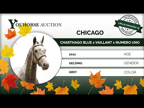 Il puledro di quattro anni, Chicago, già cavalca bene e mostra attenzione nel salto. Il sire Charthago Blue ha dieci anni ed esibisce prestazioni a livello internazionale di 1,45 m. Porta con sé le preziose linee di sangue di Chacco-Blue e Carthago. La dam Cavalotti è una figlia di Vaillant (livello di 1,40 m) ed è anche madre di un cavallo da 1,20 m e di un altro da 1,25 m. La nonna Valotti (Numero Uno x Indoctro) è una cavalla KWPN d’élite che ha gareggiato a livello di 1,40 m. https://youhorse.auction/en/auction/Chicago-CHARTHAGO-BLUE-x-VAILLANT