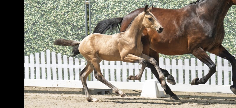 Bewegungsstarkes Hengstfohlen aus einer doppelt veranlagten Verbandsprämienstute. Toller Typ, groß und langweilig, Sehr brav, kennt das Fohlen ABC, keine Unarten.