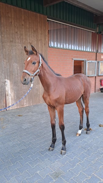 I am offering a stylish colt by Be my Dancer out of a premium mare by Ampere. Equipped with three good basic gaits, halter-trained, and regularly dewormed, he is for sale. His full brother was the champion foal of the first crop of Be my Dancer at the foal show in Wettringen in 2023. Be my Dancer won the bronze medal for 6-year-olds at the Bundeschampionat this year.