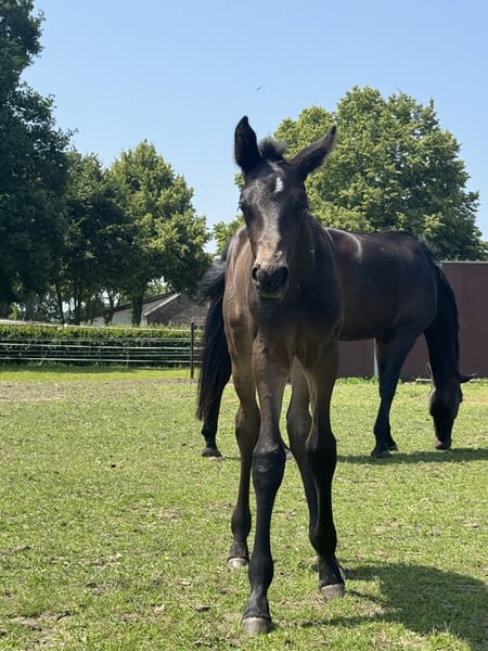 Colt foal by Iowa Gold x Maracana x Rosengold – Exquisitely bred, strong in movement This dark brown colt foal impresses not only with its excellent pedigree but also with its outstanding movement quality. Pedigree Sire: Iowa Gold – modern, sport-tested stallion with top character Dam's sire: Maracana – known for expression, uprightness, and movement dynamics From the dam line of Rosengold, a proven elite stallion with high rideability Maternal elite line The foal comes from a performance-tested, top elite mare line – the best prerequisites for sport and breeding. Movement & Type • Light-footed and elegant • Active, powerful hindquarters • Above-average basic gaits with a lot of cadence • Outstanding movement mechanics