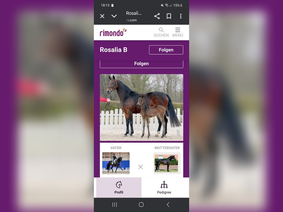 Venta de una yegua Westfalia Se ofrece a la venta una hermosa yegua Westfalia de 9 años como yegua de cría. - Raza: Westfalia - Sexo: yegua - Año de nacimiento: 2016 - Color: castaña - Altura: 1,70 m Esta elegante yegua no solo impresiona por su aspecto atractivo, sino también por su carácter amistoso. Es muy adecuada para la reproducción, ya que se adapta sin problemas y ya ha tenido dos potros sanos. También puede servir como yegua de compañía, ya que no ha sido montada. La yegua está bien entrenada, es tranquila en su manejo y ya tiene experiencia en paseos en campo, trabajo en el suelo y en la longe. Está sana, vacunada y desparasitada regularmente. Para más información o para concertar una visita, no dude en contactarme. ¡Esperamos su mensaje! Saludos cordiales, Jacqueline Starke