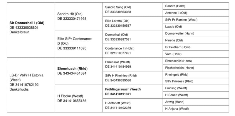 LS-Dr VbPr H EstoniaEHRENTUSCHH FlockeEHRENSOLDST.PR.ST. RHEINFEEFRÜHLINGSRAUSCH