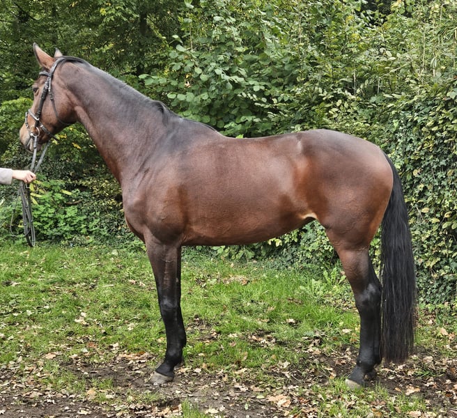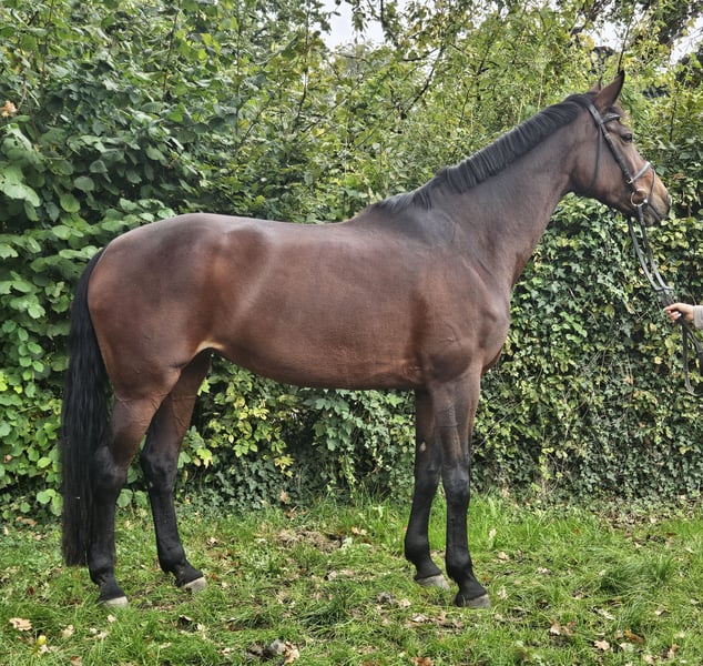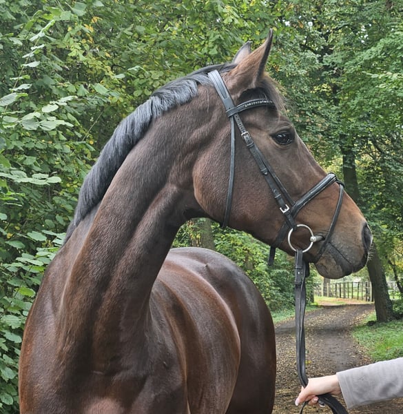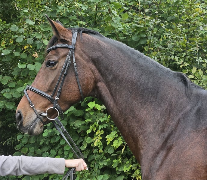 Maly is a Westphalian mare, approximately 172 cm tall. She is sired by Franziskus, with Fidertanz/Rock Forever I in her pedigree. Maly is being sold by her private owner with a heavy heart. Her first owner had Maly for 9 years, during which she was quite successful in L-level show jumping (even winning at L level) and was also placed in A-level dressage. The current owners have had Maly for 3 years, where she has been used as a school horse and has also achieved placements in dressage and show jumping up to A level. Maly is now looking for a permanent home, preferably as a school horse or for cross-country riding. We have also tried vaulting with her, which she does wonderfully. :-) Maly is very rider-oriented; when she is on your side, she will stand by her new rider through thick and thin. She is always well-behaved under saddle, but can be a bit mareish with unfamiliar riders, as has always been the case. She is not a professional horse; the owner is a young girl who learned to ride on her and has always managed well. If you are interested in videos, please send us a WhatsApp at: 0177/2721831. For further information, we look forward to your calls.
