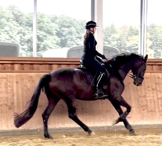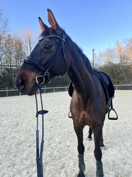 Ich suche für meine brave, menschenbezogene Westfalenstute mit einem Stockmaß von 1,72 m ein neues Zuhause. Sie stammt ab von Depeche Mode (Damon Hill – Ferragamo) × Ehrentanz I – eine Abstammung, die für Rittigkeit, Bewegung und Charakter steht. Die Stute hat einen chronischen sowie einen leichten, akuten Fesselträgerschaden und braucht daher eine Erholungszeit auf der Wiese. Sie zeigt auf der Weide keine Lahmheit und bewegt sich dort völlig unauffällig. Beim Reiten zeigt sie jedoch Taktunreinheiten im Trab, daher ist aktuell kein Reiten möglich. Nach ausreichender Regeneration ist sie voraussichtlich wieder freizeitmässig reitbar. Sie ist brav und zuverlässig im Gelände. Sie hatte bereits ein Fohlen und hat sich dabei als liebevolle, unkomplizierte Mutterstute gezeigt. Dadurch eignet sie sich auch hervorragend als Zuchtstute oder Beistellpferd, da sie im Umgang absolut ruhig, sozial und ausgeglichen ist. ✨ Das zeichnet sie aus: • brav, freundlich und menschenbezogen • geht brav ins Gelände • herdenverträglich mit Stuten und Wallachen • verlade- und schmiedefromm • aktuell vorne beschlagen, kann aber problemlos barhuf laufen • braucht keine Medikamente Ein passender Sattel kann auf Wunsch mit erworben werden. Bei ernsthaftem Interesse können gerne Videos vom Freilauf und Reiten zugeschickt werden. Ich wünsche mir für sie ein liebevolles Zuhause, in dem sie einfach Pferd sein darf – oder vielleicht noch einmal Mama wird.