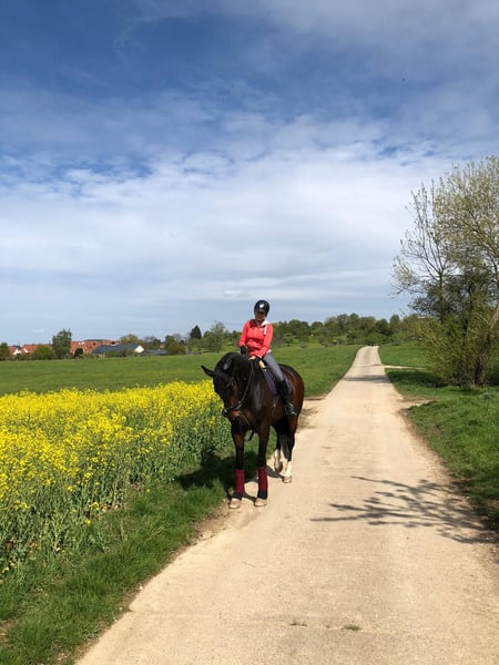 Für unsere dressurgezogene Stute suchen wir eine erfahrene und zuverlässige Reitbeteiligung für 2 Mal die Woche. Gerne sonntags und einen weiteren Tag unter der Woche sowie als Urlaubsvertretung. Charakterlich ist sie sehr brav und unerschrocken auch im Gelände. Sie ist sehr menschenbezogen und kennt keinerlei Unarten weder bocken noch steigen. Trotzdem ist sie kein Anfängerpferd, daher solltest du reiterlich mindestens auf sicherem A-Niveau sein und bereits Erfahrung in der Dressurarbeit mitbringen und wissen, wie man ein Pferd sanft und korrekt an den Zügel reitet. Sie ist in der Dressur bis zur Klasse L/M ausgebildet, kennt Longenarbeit, den großen Aussenplatz und geht mehrmals die Woche, alleine oder in der Gruppe, ins Gelände, macht aber auch so jeglichen Spaß mit. Das sportliche sollte nicht an erster Stelle stehen. Wir wünschen uns einen selbstkritischen Reiter, der fein und liebevoll versucht ein Team mit Babsi zu werden. Gerade am Anfang wäre Reitunterricht sinnvoll. Reiterlehrer sind vor Ort, gerne kannst du aber einen eigenen mitbringen. Du solltest mindestens 18 Jahre alt sein und mobil, denn der Stall ist nicht mit den Öffentlichen Verkehrsmitteln zu erreichen. Der Stall befindet sich in Wernau und verfügt über eine Reithalle, eine Longierhalle sowie einen großen Außenplatz und ein wunderschönes Ausreitgelände. Stallarbeit, wie Misten, fällt für dich nicht an, so das du dich komplett auf die Arbeit mit Babsi konzentrieren kannst. Haben wir dein Interesse geweckt? Dann würden wir uns sehr über eine Nachricht von dir freuen!