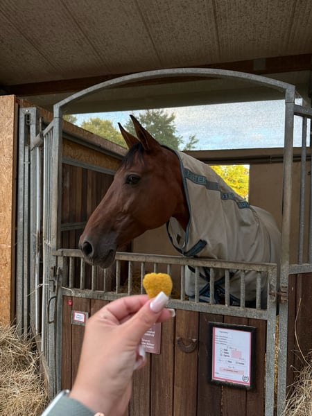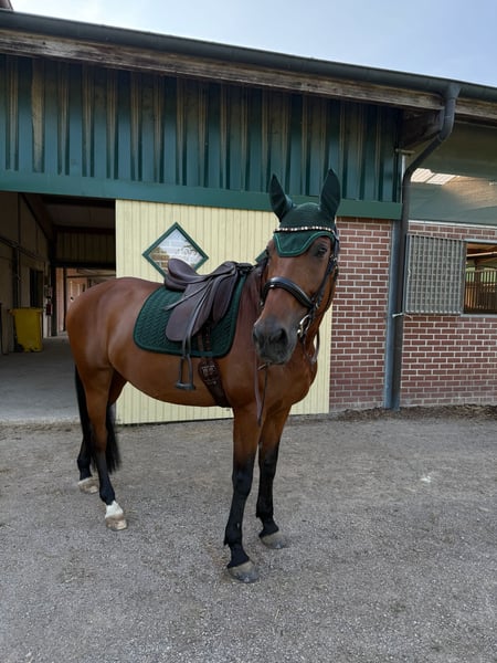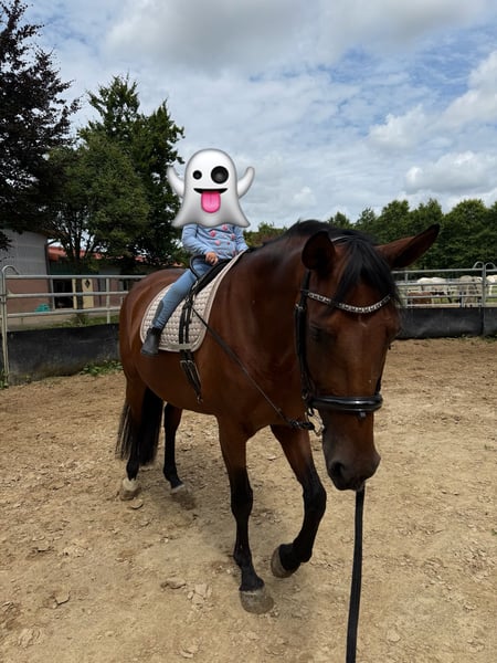 Harmony ist eine 13-jährige westfälische Stute von Hosco (Spanier) x Fidermark mit einem Stockmaß von ca. 1,64 m. Sie wurde in jungen Jahren vom Züchter erfolgreich bis Dressurpferde M ausgebildet und vorgestellt. Aktuell ist sie sicher im A-Bereich unterwegs und überzeugt als routinierte Lehrmeisterin. Harmony ist kandarenfertig, sehr sitzbequem und vermittelt ihrem Reiter ein hervorragendes Reitgefühl. Unter dem Sattel zeigt sie sich leistungsbereit, ehrlich und zuverlässig. Auch im Gelände bleibt sie stets brav und nervenstark. Dank ihres ausgeglichenen Charakters eignet sie sich sowohl für ambitionierte Freizeitreiter als auch für Reiter mit sportlichen Zielen, ebenso für schwächere Reiter, die ein sicheres Pferd suchen. Ein Pferd mit Top-Charakter und solider sportlicher Ausbildung. Sattel und Trense können gegen Aufpreis übernommen werden. Viedeos können per PN verschickt werden, sowie die Abstammung aus dem Pass. Impfungen sind grade alle aufgefrischt worden, große AKU liegt vor