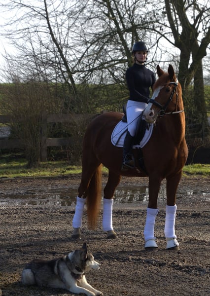 With a heavy heart, we have to part ways with our beloved chestnut mare Flora. Born in 2010, she stands at 1.74 meters and is by Fuechtels Floriscount OLD out of Wenzel 2. We purchased her three years ago for our then 13-year-old daughter to introduce her to competitive riding. Unfortunately, they didn’t quite match. Her previous owner had her competing up to L* dressage and L jumping levels, and she has won A** jumping classes. Flora has always been eager to work and enjoys movement; she truly is a hardworking horse. Therefore, her new owner should enjoy daily training and plan to ride her at least four times a week. She should also have access to a paddock or pasture daily to stay balanced, though she can become lively if not sufficiently exercised. As a typical mare, she needs to be won over and may test boundaries until she trusts her rider. Flora is not suitable for beginners or timid riders. She has two medical reports, but these do not restrict her riding ability (medical reports available for review). Test rides are possible at any time. In jumping, she would need some encouragement to get going again. For a confident rider, she is the perfect all-rounder! Videos can be provided upon request. Feel free to contact me via WhatsApp or phone: 0151 461 285 72.