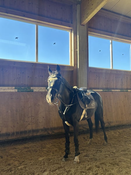 Hallo zusammen, ich suche für meine Stute (1.65) eine ZUVERLÄSSIGE Reitbeteiligung Sie ist Vielseitig ausgebildet ( springen und dressur) sie braucht einen einfühlsamen und sicheren reiter der ihr auch im generellen Umgang Sicherheit bietet wir bieten eine Reitanlage mit Halle und Platz diese sollte so wie die Ausstattung pfleglich behandelt werden Stell dich einfach mal vor :)