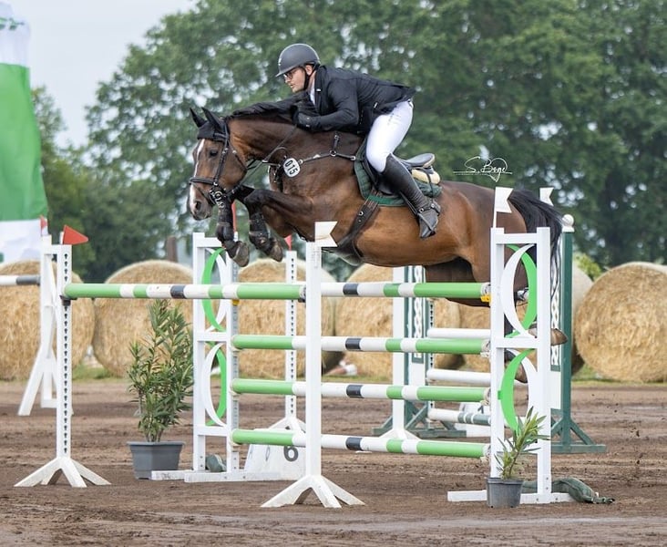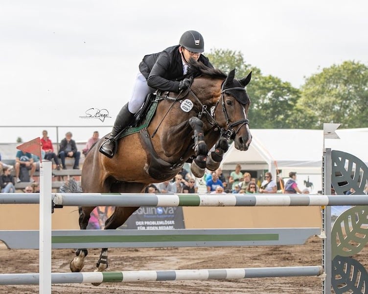 Con gran pesar, vendo mi yegua de 19 años por motivos de tiempo. Con ella he competido con éxito en saltos hasta la categoría S*, y la anterior propietaria la llevó a competir internacionalmente con victorias hasta 145 cm. Ya tiene un potrillo sano, que también puede ser visto. Arizona entra sin problema en el campo sola o con otros caballos y es fácil de montar. No presenta dificultades en la herradura, con el veterinario ni al cargar en el remolque. Está sana, vacunada regularmente y sin dolores. Si está interesado o desea más información, no dude en contactarme por teléfono. (También por WhatsApp) TEL.: 0176/268258