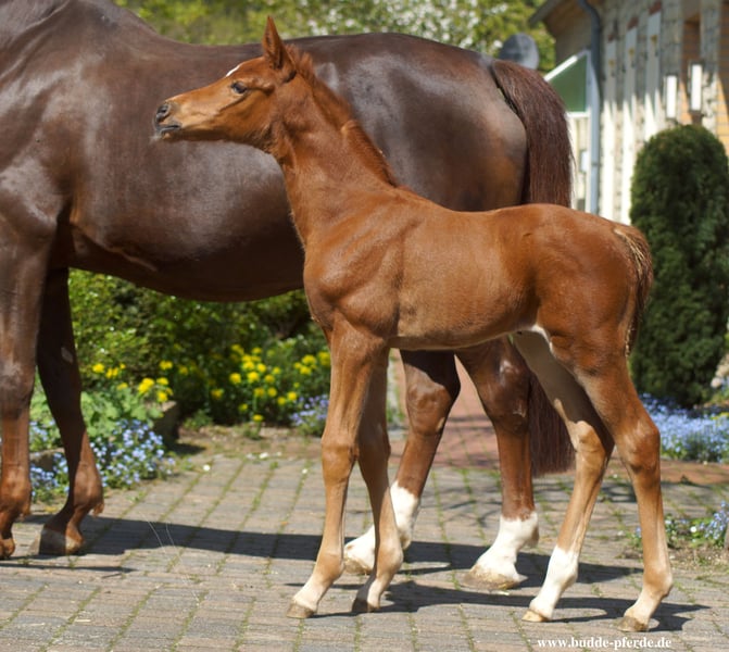 ❤️ Frederike of Budde * April 13, 2025 — has been sold to a horse-loving and knowledgeable lady who already secured her half-brother last year. If you are interested in the foal for 2026, please feel free to get in touch now. Fleur de Don Schufro is already in foal for 2026 to VIVA MOR (Viva Gold). This foal is a stunning, noble, long-legged princess who has everything one could wish for: She is beautiful with an elegant head and large eyes, tall and affectionate. Her movement is expansive like her mother’s, Donna Schufro ❤️. Her canter is high-spirited, her trot has the desired knee action and plenty of freedom of movement. We already thought this pairing would be a good match, as her sire, Dutch Dream, comes from the Brinkmann NL breeding program, sired by Dream Boy, one of the best horses in the world. We have already bred twice with Dream Boy from different mares, resulting in rideable horses that meet high standards and possess a very kind nature. The dam line of Dutch Dream also appealed to us greatly. ❤️ DUTCH DREAM (Sire) A beautiful, highly expressive, and superbly bred son of Dream Boy and the famous mare Hollywood Tarpania. Winner of the VSN Trophy 2022 and third place in the Pavo Cup Finals 2022. Not bad, right? In our view, the dam line is an important criterion when selecting breeding stallions. Now, about the dam line of ❤️ Frederike of Budde: Her dam is a direct daughter of Don Schufro and is very well moving. ❤️ Fleur de Don Schufro (Dam) (Fleur van de Wulfsdam) DON SCHUFRO REVAN (Rubinstein) FLEUROP (Florestan) DIAMANTINO (full sister to DUNHILL) RAMIRO Z Angelo XX ❤️ First Dam: StPr Elite Brilliantring mare Fascinata by Revan (Rubinstein) (Breeder: Gundula Vorwerk) Disagio (Dimaggio): PSG/Inter I Belmondos Cadeau: S Dressage Freya von Egonius: CCI1* ❤️ Second Dam: St Pr St Fascination by Fleurop (Florestan) Scores: 8, 9, and 10 for rideability ❤️ Third Dam: St Pr St DANILLA by DIAMANTINO Full sister to the approved stallion DUNHILL H (Grand Prix) HLP in Münster-Handorf with the following scores: DRE 147.69 (1st), SPR 138.66 (1st), INDEX 153.47 points – 1st place out of 75 ❤️ Fourth Dam: St Pr St RENAISSANCE by Ramiro Z ❤️ Fifth Dam: Verb. Pr.St. Andorra by Angelo XX Breeding such mares is what my breeding friend advised, and he is right. Anyone who experiences ❤️ Frederike will understand why. If you are interested in an excellent filly that meets the highest standards in sport and breeding, you should come see this mare. Perhaps our Tia Fanegra or Freya Ricciana are still available too... Feel free to call if you are interested in Frederike. And I bet a bottle of champagne that Frederike will turn out to be a very dark liver chestnut, just like her two grandmothers... You can see them in the last three pictures. Maybe until soon...