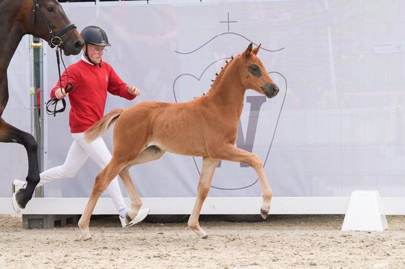 Exclusive filly by Selectric out of a Sandro Hit x Royal Diamond dam. Beautiful dark chestnut mare for sale as a weanling from the breeder. Scarlett is an all-round healthy, bright, self-confident weanling foal with a lot of heart. Just the right basis for the big arena. Inquiries gladly by whatsapp +491704896517
