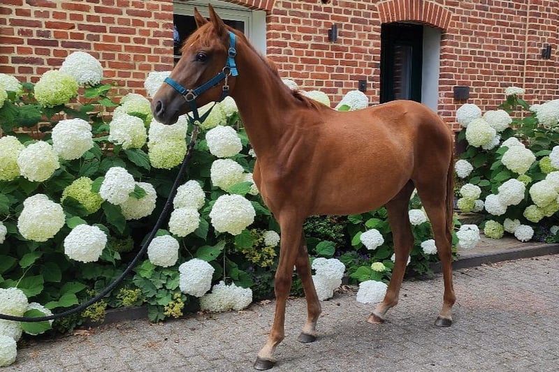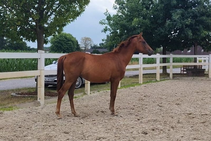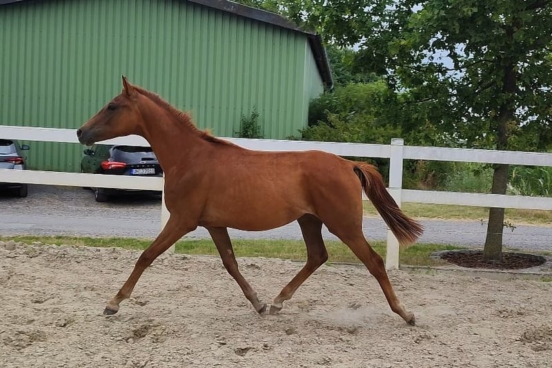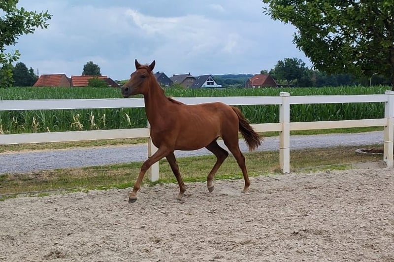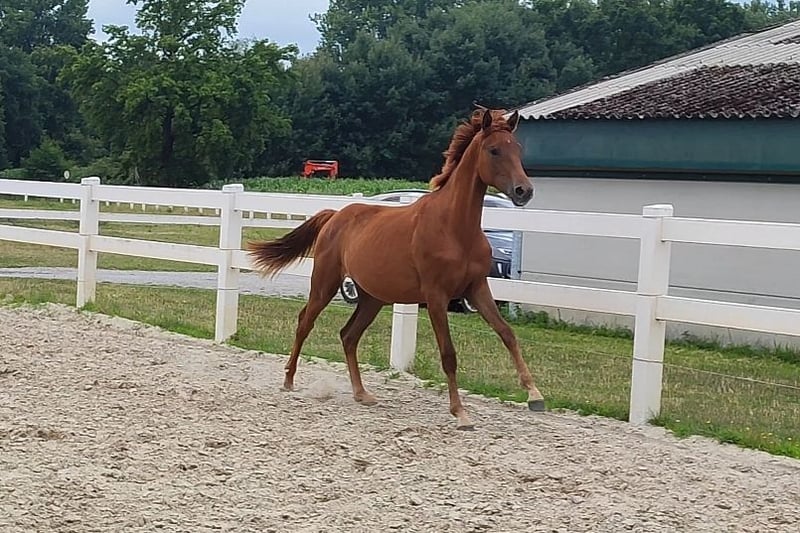 Pouliche exclusive par Selectric d'une mère Sandro Hit x Royal Diamond. Magnifique jument alezane foncée sevrée par l'éleveur. Scarlett est une pouliche sevrée en pleine santé, éveillée, sûre d'elle et avec beaucoup de cœur. C'est la base idéale pour le grand rectangle. Demande par whatsapp +491704896517