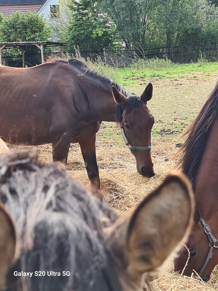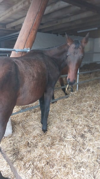 Jährlingsstute von Escaneno Wunderschöne Jährlingsstute mit sehr edlem Kopf, geboren am 08. April 2024! Stammt ab vom Prämienhengst Escaneno. Dieser überzeugte bereits mehrfach durch den Sieg im Sporttest mit höchsten Rittigkeitsnoten. Sein Typ und das beeindruckende Pedigree lassen keine Wünsche offen! Die Mutter stammt ab von Hotline, dem begehrten Reitpferdemacher, der über 50 Nachkommen hinterließ die bis S platziert waren. Die Mutter ist selbst bis L platziert und hat mit einem Mädchen E-Dressur gewonnen. Leichtrittig, ehrlich und von gutem Nervenkostüm. Sie trägt den Titel Staatsprämienstute. Die Stute besticht durch einen edlen Typ mit tollem Halsansatz, ein ergiebiger durch den Körper schreitender Schritt, gutem Trab und einer raumgreifenden Galoppade. Bei Interesse sende ich gerne Videos zu! Hier müsste eine rittige Stute mit drei überdurchschnittlichen Grundgangarten und top Charakter heranwachsen. Mutig und dem Menschen zugewandt.