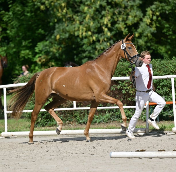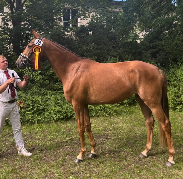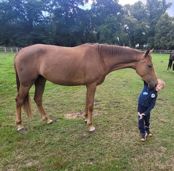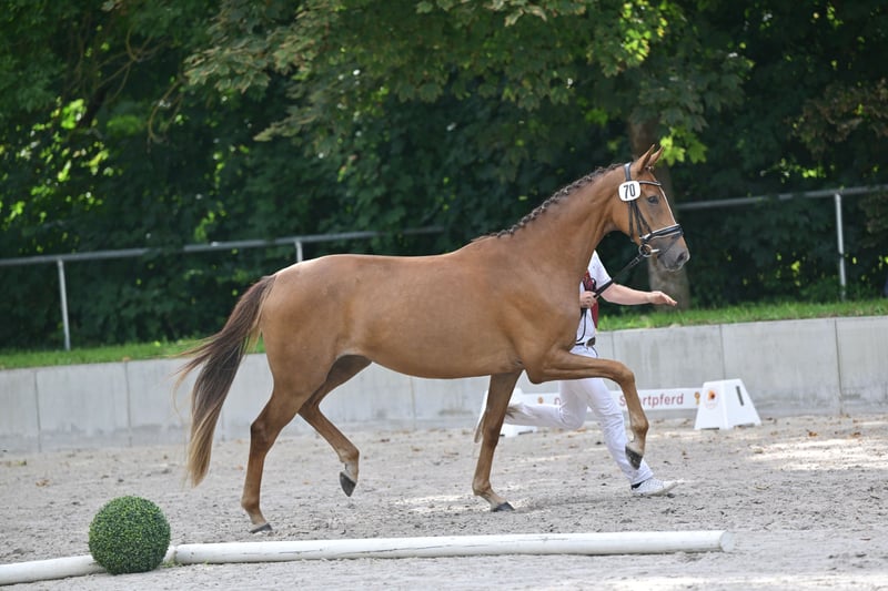 Zum Verkauf steht unsere 3-jährige Westfalen-Stute (geb. 15.04.2022) Lilibet PTW aus dem holländischen Zoliante / Lady Reveil Stamm - zu finden unter dem Namen Lilibet PTW bei Horsetelex. Sie stammt ab vom Vize-Bundeschampion und Vize-Oldenburger Landeschampion sowie unter Dorothee Schneider bis Klasse S* erfolgreichen Lilliano OLD (Lissaro/ Sir Donnerhall / Rubinstein I) aus der westfälischen StPrSt. Emirates GV (Escolar/ Breitling W/ Christian Prince xx), geb. 2014, 1d Preis Eliteschau Westfalen 2017, Dressurbetonte Endnote SLP 8,1 in Münster/Handorf 2017, siegreich Dressurpferdeprüfung bis L international, die beide im letzten Bild zu sehen sind. Großmutter Burj al Arab wurde seinerzeit hochpreisig beim CHIO Aachen verauktioniert und lief bis PSG/Inter I unter Frau Max-Theurer. Aus diesem Stamm kommen mehrere sporterfolgreiche Pferde und gekörte Hengste, wie Heidelberg I-IV. Lilibet PTW ist eine typstarke, mit 3 sehr guten Grundgangarten ausgestattete Stute, die sich durch ihre Leistungsbereitschaft und ihren stets freundlichen, dem Menschen zugewandten Charakter auszeichnet. Vor allem der außerordentlich gute Schritt sowie der mit 9,0 auf der Staatsprämienschau bewertete Trab sind hervorzuheben und kommen auch unter dem Sattel zur Geltung. Seit dem 6. Lebensmonat ist sie im Hauptgestüt Neustadt/Dosse zu Hause. Bestens versorgt durch die Gestüter und auf riesigen Weiden mit Licht, Luft und Bewegung wachsen die Pferde dort optimal heran. Seit Februar 2025 wurde sie anlongiert, danach behutsam angeritten und legte erfolgreich ihre 21-tägige SLP in Neustadt/Dosse ab. Sie erhielt den Staatsprämientitel. Klinisch war die Stute bisher unauffällig und kennt den Tierarzt nur vom Impfen. Da sie nach dem Anreiten und der SLP sowie den Zuchtschauen zur Reifung noch eine Weidepause erhalten hat, steht sie aktuell in der Zuchtstutenherde des Hauptgestütes. Sie ist sicher tragend vom Landbeschäler und Aushängeschild des Landgestütes Neustadt/Dosse Ben Benicio (Benicio x Hochadel x Fidermark). Voraussichtlicher Abfohltermin ist um den 18.05.2026 herum. Bis zum Absetzen in 2026 könnte die Stute auch noch in Neustadt/Dosse in Pension verbleiben. Danach kann sie sicherlich problemlos reiterlich wieder angeschoben und weiter ausgebildet werden. Hier reift ein Pferd für den gehobenen Amateur-Dressursport heran. Sie kann jederzeit in Neustadt/Dosse besichtigt werden. Kein Schnäppchen und kein Notverkauf! Die Anzeige ist ebenfalls nicht gedacht zur Anbahnung einer Brieffreundschaft, Telefonseelsorge sowie der Befriedigung von Sammelleidenschaften für Pferdebilder und -videos. Bei ernsthaftem Interesse freuen wir uns über Ihre Kontaktaufnahme.