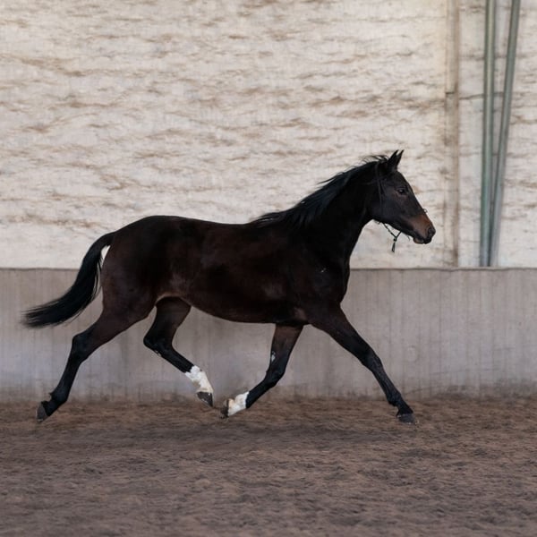 V: Vision VV: Vitalis MV: Benetton Dream De laatgeboren merrie "Vom Feinsten" (roepnaam "Mareike"), geboren in juni 2023, is een ware ruwe diamant. Ze overtuigt met grote, duidelijke gangen, veel schwung en expressie. Ideaal voor zelfopgeleide ruiters met ambitie in de dressuursport. Momenteel groeit Mareike op in een merrie groep met gemengd leeftijdsbereik (1-25+ jaar) en toont zich daarbij zeer makkelijk in de omgang. Meer informatie: - halster- en longeerbaar - staat rustig voor het poetsen en de hoefsmid - gaat braaf aan de hand het terrein in - eerste ervaring met longeerwerk aanwezig - regelmatig voorgesteld aan de hoefsmid (barhuf) - ontwormd - gevaccineerd (griep, tetanus, herpes) - herfst 2025 eerste keer gebitscontrole (wolfstanden niet meer aanwezig)