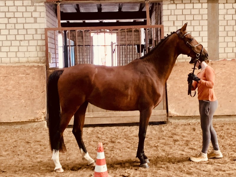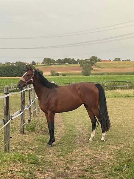 Beautiful young mare from the jumping-talented stallion Chubakko (Ludger Beerbaum Stables). Very energetic trot and a mare that moves through her body. Already started under saddle in February 25, very willing to learn and deeply relaxed during the initial training. In free jumping, Chubine shows her talent, with great overview and bascule. Chubine is brave and approaches unknown things with curiosity!