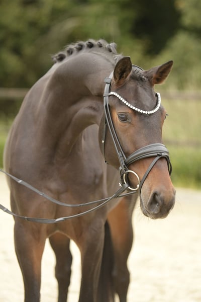Hermosa y prometedora yegua de 3 años por Glamourdale. Desde que empezó a trabajar bajo la silla, su desarrollo mejora día a día. Con tres excelentes GGAs, es una oferta fantástica para el entrenador de doma ambicioso. Para más información, no dudes en contactarnos por teléfono o WhatsApp +49 1512 9052971.