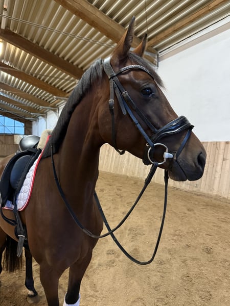 Zum Verkauf steht unsere 4-jährige, selbst angerittene Stute Ria Lux. Wir geben sie schweren Herzens ab, da wir aktuell einfach zu viele Pferde im Stall haben und für sie ein passendes Zuhause suchen, in dem sie individuell gefördert wird. Ria überzeugt mit einem herausragenden Charakter, bester Rittigkeit und viel Vertrauen zum Reiter. Trotz ihres jungen Alters zeigt sie sich stets zuverlässig, gelassen und lernwillig – egal ob auf dem Reitplatz, in der Halle oder im Gelände. Sie verfügt über drei sehr gute Grundgangarten, eine angenehme Anlehnung und ist weich zu sitzen. Ihre Leichtrittigkeit und ihr ausgeglichenes Wesen machen sie zu einem angenehmen Partner im täglichen Training. Ria bringt alles mit, was man sich von einem modernen Sportpferd wünscht, und hat das Potenzial, sich mit entsprechender Förderung im Turniersport weiterzuentwickeln. Auch für ambitionierte Amateurreiter ist sie aufgrund ihres unkomplizierten Charakters bestens geeignet.