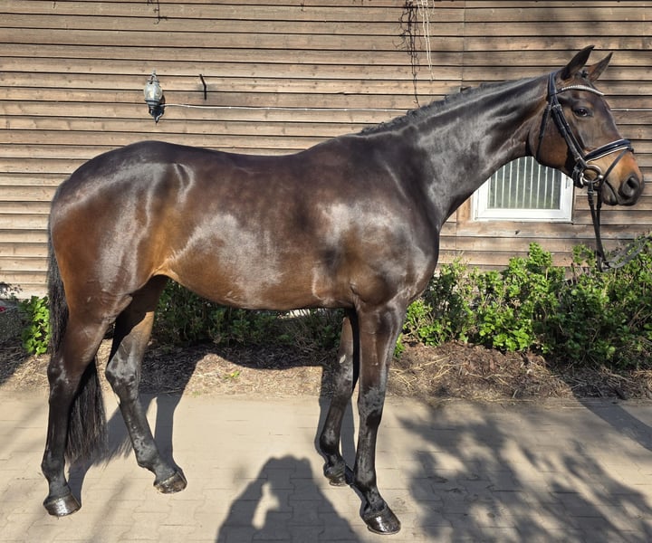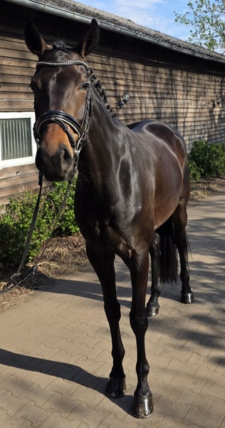 Mit Fanny bieten wir eine vierjährige, sehr liebe und abgeklärte Stute an, die eine top Perspektive für den Sport oder auch für den ambitionierten Freizeitreiter darstellt. Fanny wurde dreijährig angeritten, hat 2 Turniere als Lernstart mitgemacht, hatte danach immer mal wieder Pausen, sodass sie jetzt vierjährig hochmotiviert weitergearbeitet werden kann. Bei ihrem ersten Start in der Dressurpferde A konnte sie sofort einen Sieg holen. Sie wurde bis jetzt sehr jungpferdefreundlich ausgebildet, was sich in ihrem natürlichen Bewegungsablauf und der zufriedenen Arbeitseinstellung widerspiegelt. Fanny bringt eine sehr gute Arbeitseinstellung mit, ist immer fleißig ohne dabei spannig oder verrückt zu sein. Auch erste kleine Ausritte hat sie in Begleitung sehr entspannt gemeistert. Wir können Sie uns sowohl für den Profi, der ein Ausbildungspferd mit viel Perspektive sucht, vorstellen, wie auch für einen Amateur oder sogar den Para-Sport. Natürlich steht sie mit ihren 4 Jahren noch am Anfang der Ausbildung, weshalb sie nicht als Anfängerpferd abgegeben wird. Wir haben Fanny selbst gezogen, genauso wie die Generationen davor. Mehrere Halbgeschwister zur Mutter sind erfolgreiche S-Dressurpferde. Fanny steht aktuell in einer Paddockbox, sie kennt aber auch normale Boxenhaltung sowie 24/7 Weide- und Herdenhaltung aus der Jungpferdeaufzucht. Sie ist mit allen Pferden sehr verträglich. Fanny liebt es zu kuscheln und Aufmerksamkeit zu bekommen. Sehr gute Röntgenbilder aus letztem Jahr können bei ernsthaftem Interesse versendet werden. Bei Interesse oder offenen Fragen können Sie uns gerne jederzeit kontaktieren: Whatsapp: 01607560041 Anruf: 017132344455