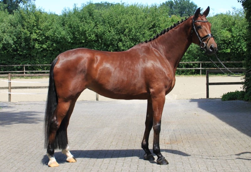 Valentine's Day to ambitna klacz z trzema dobrymi podstawowymi chodami. Więcej informacji na www.dressagehorses-dedoncker.com