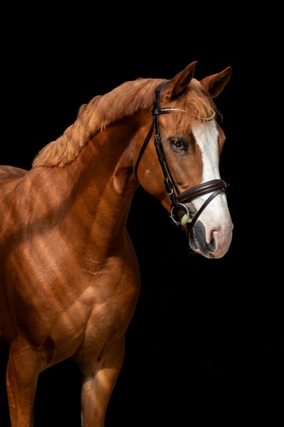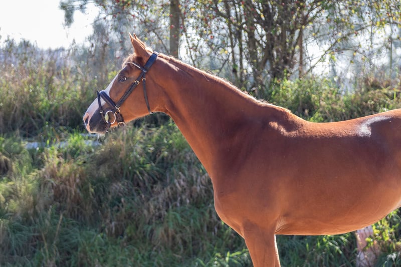 6-year-old, ambidextrous, stunning chestnut mare with great basic gaits and striking markings For sale is our stunning Westphalian mare Grace d'Amour S, Galant de Semilly x Bugatti, from our own breeding. I am a master of equine management specializing in classical riding and compete up to the advanced classes. At our family-run facility, we have been breeding successful sport and leisure horses with much love and experience for decades. One of my passions is breaking in and presenting our young horses at competitions. Grace is an exceptionally beautiful chestnut mare with a very pleasing height of 164 cm. This makes her suitable not only for adults but also for larger children. Grace has no vices, fears, or quirks. She does not buck or rear. On the contrary, for her age, she can be described as calm and strong-minded. She always wants to please, whether under saddle or in handling. Grace possesses three good basic gaits and shows herself to be eager and willing to learn under saddle. In the 1.5 years she has been under my saddle, I have established absolutely correct basics in dressage and jumping. Easy to handle, she could immediately start in the E and A classes, even with a young or less experienced rider. She was able to prove her abilities at her first competition, where she not only shone with her stylish appearance but also impressed the judges with her skills. She placed immediately in her first suitability test. On the competition and warm-up grounds, she behaves exemplary, just as she does at home, presenting herself confidently and fearlessly. In perfect health (has never been sick), brave and willing to learn, all paths are open to her. I wish for her an ambitious rider who will further educate her and present her at competitions. Her ambidextrous nature also makes her interesting for eventing. Of course, she would also make a great companion in leisure activities. You can cuddle with her and spend a lot of time together. She truly gallops into everyone’s hearts. With her nice character and balanced nature, I could also imagine a mother-child combination, where they could further promote her and perhaps present her at competitions, or simply invest a lot of time and love in her, go for rides, and have fun. Healthy and expressive with very good jumping ability, her foundation is laid, and one can decide which further path to take with her. We are so convinced of her abilities, conformation, and appearance that we even bred a foal with her last year. With her good pedigree, she is also perfectly suited for breeding. Grace is a beautiful horse with an honest character and a heart of gold. Feel free to get to know Grace and our facility personally and contact me by phone or email. A trial ride is, of course, possible by arrangement and with serious interest. To prevent riding tourism, we charge 50 euros for the trial ride.