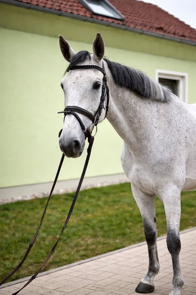 For sale is our 6-year-old mare "Cherry Blossom" (Zwiebel), a cross between Colorit and Quidam de Revel. Although she has only been under saddle for a year, she already demonstrates her potential in competition. She remains completely unbothered and fearless, having already placed in Jumping Horse Class A. Zwiebel is very gentle in handling and during daily work. At 1.63 meters (16.1 hh), she is well-suited as a pony for young riders or as a schoolmaster for smaller adults. (She also comfortably carries taller riders.) Her half-brother, Cattdaddy, competes internationally up to S*** level and was also trained by us. Zwiebel has recent, up-to-date X-rays with no findings. :) Feel free to contact us via WhatsApp for more information.
