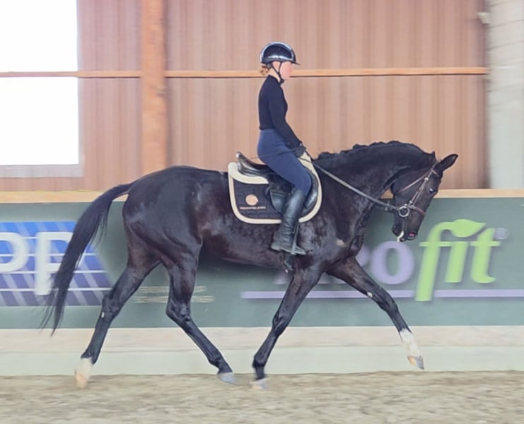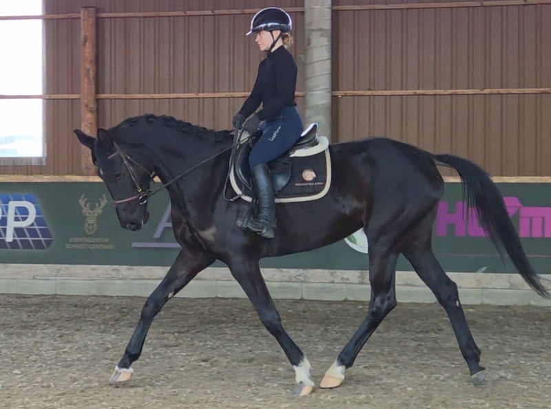 Zum Verkauf steht eine charmante, 6-jährige Stute, die mit ihrer Arbeitseinstellung und ihrem liebenswerten Wesen überzeugt. Sie verfügt über drei sehr gute Grundgangarten und eine korrekte, solide Grundausbildung. Sie besticht durch eine feine Anlehnung und ist stets leichtrittig und angenehm zu arbeiten. Eine sehr sensible, aber überaus gutmütige und freundliche Stute, die dem Menschen stets zugewandt ist. Durch ihre fundierte Basis und ihre Lernbereitschaft ist sie das ideale Pferd für die weitere Ausbildung. In den richtigen Händen reift hier ein hervorragendes Dressurpferd heran. Sie ist unkompliziert im Umgang und zeigt sich stets von ihrer besten Seite. Ein Pferd für Reiter, die eine feinfühlige Partnerin für den Dressursport suchen. Sie geht barhuf, völlig gesund hat keinerlei Unarten. Kennt Boxen haltug mit täglichen koppelgang, schmiede-und verladefromm. Ein aktuelle gute TÜV liegt vor. Probereiten nach telefonischer Terminvereinbarung möglich.