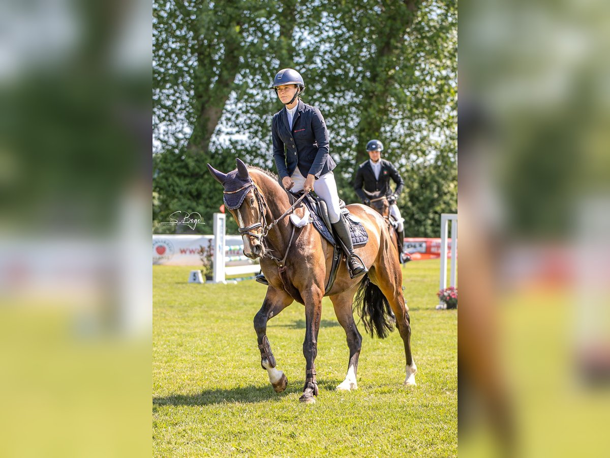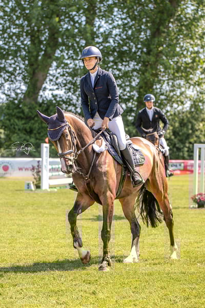 Send Westphalian Mare – Perfect for Girls or Amateur Riders! For sale is a beautiful dark bay Westphalian mare, born in 2020. Standing at 16.1 hh, she combines a practical size with plenty of charm. She already shows significant talent and motivation in show jumping, currently competed up to novice (L) level with good results. This young lady impresses with her elegant appearance, eagerness to learn, and friendly nature. She is well-trained and ready to take her next steps in the show jumping sport. Very well-behaved in handling and during daily dressage work. No quirks or fears. Please feel free to contact me for more information or to arrange a viewing.