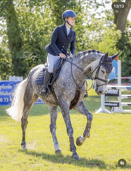 Elegante Westfale-Stute, nacida en 2020, busca nuevo propietario Esta hermosa y grisácea yegua es una verdadera joya para cualquier jinete de salto. Con una altura de 1,68 m, ofrece la talla perfecta para jinetes ambiciosos que valoran la calidad y el rendimiento. Nuestra ‘Mathilda’, como la llamamos, destaca por su elegante presencia, su carácter equilibrado y su buena base de entrenamiento. Ha sido montada y entrenada por una niña de 15 años. Siempre ha sido 100% tranquila, confiable y honesta durante su trabajo. Actualmente compite en nivel de salto L y ha obtenido buenos resultados. En casa, ya realiza recorridos más exigentes y muestra mucha precaución. Es absolutamente fácil de manejar, tanto en el campo, en la cuadra, como durante el transporte. Podemos imaginar a Mathilda como una compañera ideal para una niña, para jinetes en la categoría de niños o júnior, o también para un jinete amateur ambicioso que desee competir en saltos mayores en el futuro. Esta joven yegua tiene todas las cualidades para destacar en las pruebas de salto y comenzar una exitosa carrera en el deporte ecuestre. Está sana, vacunada regularmente y libre de enfermedades conocidas. Si está interesado, estaremos encantados de que nos contacte para discutir más detalles y concertar una visita.