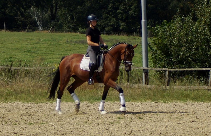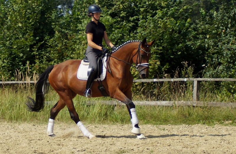 Bailadora to koń, który sprawdzi się również w rękach trenera hobbysty. Wyhodowana w Westfalii E-krew, którą reprezentuje tu Escarda, córka zdobywczyni Honorowej Nagrody w przydatności, ujeżdżeniu na poziomie zaawansowanym (A) i koni ujeżdżeniowych, przekazuje optymalne walory jezdne i charakter. Dobrze wychowana i delikatna w obsłudze, z wyjątkowym chodem i imponującym kłusem, czyni z niej idealnego konia treningowego. Szczególnie uderzający jest jej szeroki górny mięsień szyi, który tworzy odpowiedni efekt w ujeżdżeniu i zapewnia dobrą równowagę. W kłusie otrzymuje dużo uniesienia i swobody ramion od Belantis Amperesohn Bel Amour. Podsumowując, Bailadora jest koniem obdarzonym wieloma dobrymi cechami i wciąż potrzebuje zimy, by dojrzeć do pełnego rozkwitu. Bailadora została obecnie przetestowana bez żadnych wyników i będzie częścią pierwszej aukcji na farmie Höll, która odbędzie się 15 września. Więcej informacji można znaleźć na stronie Pferdesport-hoell.com. Jazdy próbne można zorganizować w dowolnym momencie.