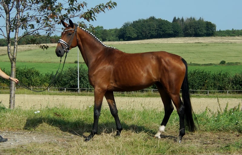 Bailadora è un cavallo che funziona anche per l'addestratore per hobby. Il sangue E allevato in Westfalia, qui rappresentato da Escarda, una figlia del vincitore del Premio d'Onore in idoneità, dressage di livello avanzato (A) e cavalli da dressage, trasmette valori ottimali di cavalcabilità e carattere. È ben educata e maneggevole, con una camminata eccezionale e un canterello impressionante, che la rendono un cavallo da addestramento ideale. Colpisce in particolare il suo ampio muscolo superiore del collo, che crea il giusto effetto nel dressage e garantisce un buon equilibrio. Al trotto, riceve molta spinta e libertà di spalla dal Belantis Amperesohn Bel Amour. Nel complesso, Bailadora è una cavalla dotata di molte buone qualità e ha ancora bisogno di un inverno di maturazione per raggiungere la piena fioritura.