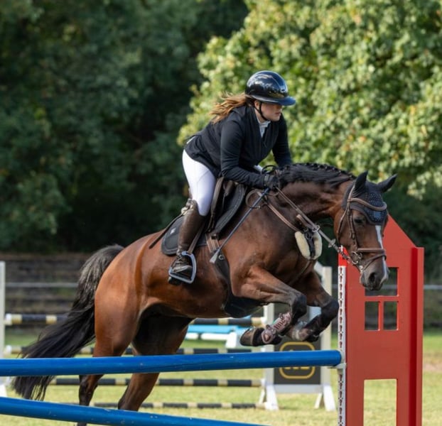 Breed: Warmblood Gender: Mare Age: 8 years Height: approximately 16.1 hh Discipline: Show jumping (placed up to L), competed in A-Dressage This stunning 8-year-old mare impresses with her presence and honest character. In the jumping arena, she demonstrates talent, composure, and an exemplary attitude – she always gives her best, knows her job well, and her passion clearly lies in show jumping. With her consistent scope, reliability, and good eye, she is the ideal partner for amateurs and transitioning riders who value safety and enjoyment in riding. In daily handling, she is always well-behaved, calm, and uncomplicated. She also remains relaxed and dependable in the field, whether ridden alone or in a group, jumping cross-country obstacles, or crossing water. She has not been specifically trained in dressage so far. Her friendly nature and willingness to perform make her a versatile horse, suitable for both competition and leisure riding. Please feel free to contact me via WhatsApp or by phone. I am happy to send videos upon request.