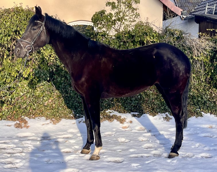 Galina - Elegant mare with potential! Galina is a very stylish black mare, born in 2018, approximately 16.1 hh. Not only is she very attractive, but she also has an excellent temperament. She has been ridden mainly for leisure and has had one foal; she is now back in work. She responds well to lunging, is impeccable in handling, and gets along well in a herd. Galina needs a gentle yet assertive rider. Once you win her heart, she becomes a wonderful partner. She is barefoot and dewormed. She is familiar with lunging, ground work, and training in the indoor arena and on the outdoor riding surface. Due to her foal, she is naturally a bit "green" in her training and now needs someone to further develop her potential. Galina has great potential, and there is much to achieve with her! Sire: Gustav v. Gambrinus Dam: v. Checkland Price: €5,950. She is located near Sonnefeld, 96242. Transportation can be arranged at the buyer's expense. Gloria is being sold due to reduction of stock.
